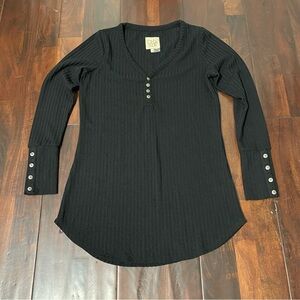 Chaser Black Long Sleeve Henley Waffle Knit Thermal Sweater Shirt Size Small