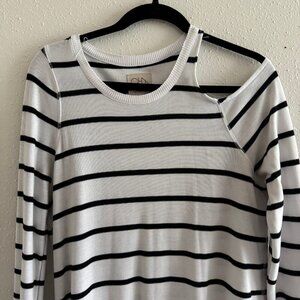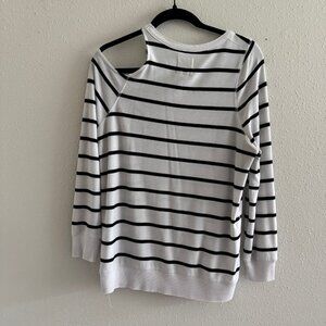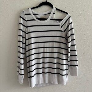 Chaser Black White Striped Cold Shoulder Pullover Sweater M