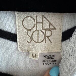 chaser sweater medium cold shoulder pullover striped long sleeve black white trendy casual comfy stretchy knit top