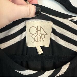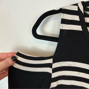 Chaser | Black and Tan Striped Cold Shoulder Long Sleeve Tee Size Small