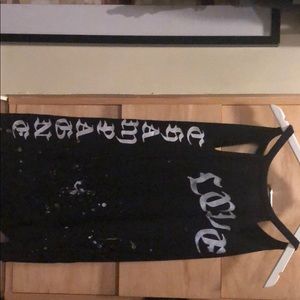 Black cashmere LOVE sweater. With cut out shoulders and an open back, this item can be worn day or night.