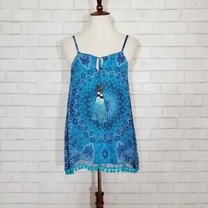 Adorable pom pom detail blue tank top from Chaser. Size medium, new with tags. Measures 27" long and bust is 17.5"