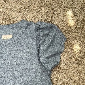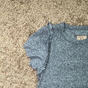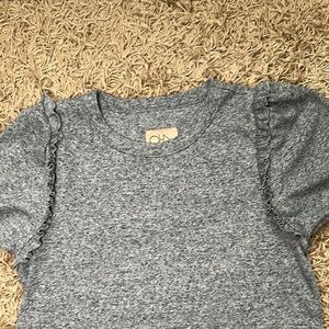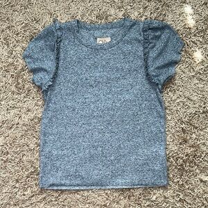 Chaser Blue Short Sleeve Knit Ruff Edge Hem Tee with Puff Sleeves Size Medium