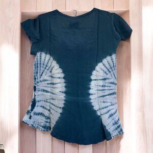 Chaser Blue Tie Dye Blouse Top Tie Waist XS