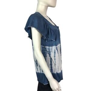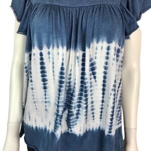 Chaser Blue & White Tie Dye Boho Tee Shirt Vintage Jersey Flutter Sleeves