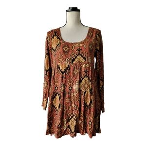 Chaser Bohemian Print Long Sleeve Mini Dress Size S New