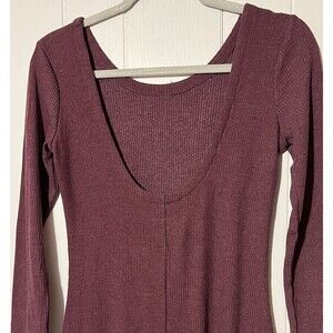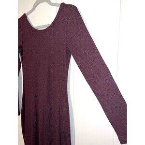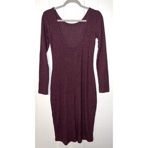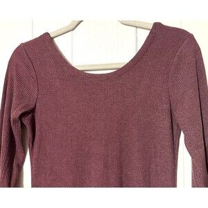 Chaser Burgundy Long Sleeve Ribbed Dress Open Back Round Neck - Size Small