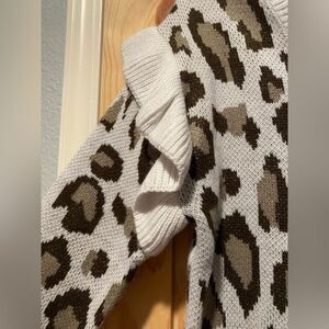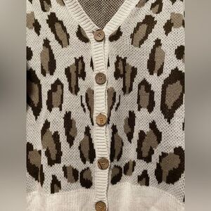 Chaser Button Front Cardigan Sweater Medium Cheetah Cozy Ruffle Long Sleeve