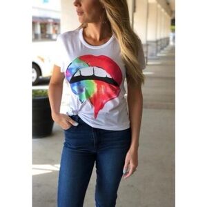 Chaser Classic White Rainbow Biting Lips Graphic Tee Shirt. Short Sleeves. Graphic on Front. Soft Comfy Material. Cute & Comfy. Loose & Lightweight. NWT / New With Tags. Great Condition.No Stains or Rips.