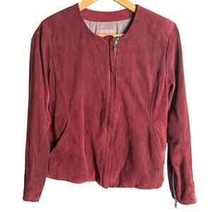 Chaser Coco Collarless Suede Leather Jacket Maroon Size M