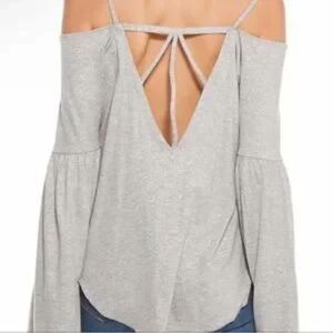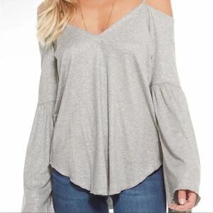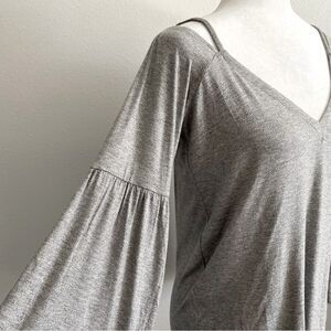 Chaser Cold Shoulder Gray Silver Glitter Bell Flounce Sleeves M NWT