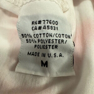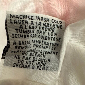 White racerback tank top with pink splashes of color throughout the shirt. This lightweight shirt has the words Danger Bird and a bird logo in black on it with blue shapes around it. It has a biased hemline.