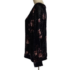 Chaser Deconstructed Floral Velvet Top Sz M Black Mauve Open Back Long Sleeve