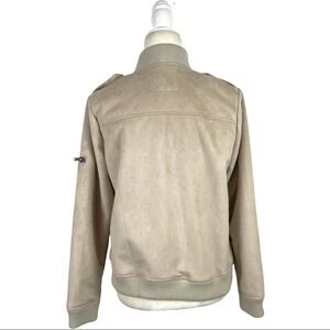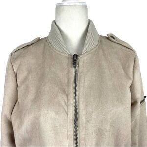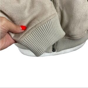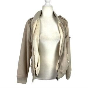Chaser Faux Fur Lined Faux Suede Cropped Full Zip Jacket in Beige Size Medium
