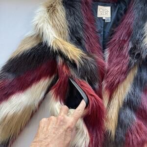 Chaser Faux Fur Party Coat Jacket Multi Color Size M New Years Event Vegas Club
