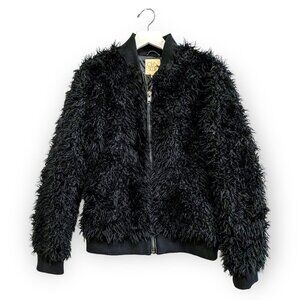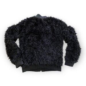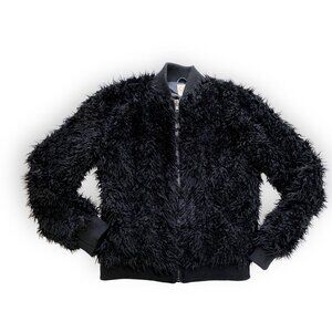Chaser Faux Lamby Black Vegan Fur Bomber Jacket L NWT