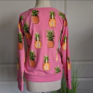 Chaser Fleece Pullover Pineapple Print Lightweight Long Sleeve Crew Pink S NWT