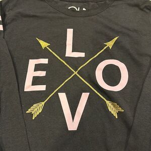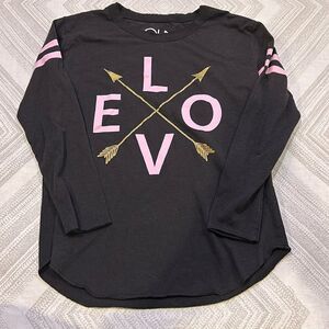 Chaser Girls LOVE & Arrow Long Sleeve Shirt. Color is a light black. Some piling on the shirt. 15” pit to pit. 18.5” shoulder to bottom hem. Size 7. Gently worn.