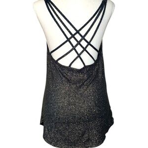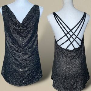 Chaser Glitter Jersey Draped Cowl Neck Halter Top Strappy Teal Green & Gold Sz M