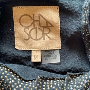 CHASER Jersey Strappy Draped Neck Halter Teal Green Blue. Glittery Gold Fabric.
