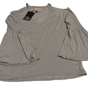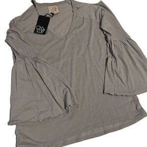 Chaser Gray Cold Shoulder Long Bell Sleeves Top Size M NWT