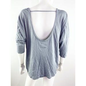 Chaser Gray Linen Top Deep Scoop Back Shirt Size M