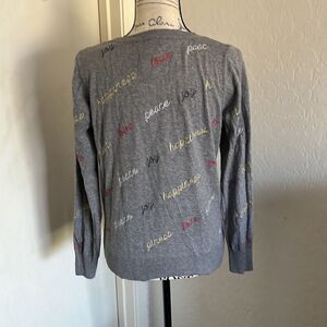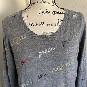 Chaser Gray Love Peace Joy Happiness Lightweight Sweater. Size large, pullover style, view all photos for best representation, in good pre owned condition.