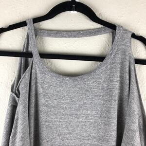 Chaser Gray Triblend Jersey Deconstructed Long Sleeve Cut Out Back Cold Shoulder Drawstring Waist Hi-Lo Dolman Pockets Dress
