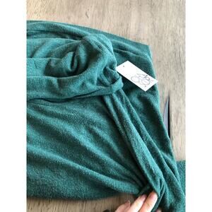 This sweater is full of style. It is a Dolman style with a drapey cowl neckline. The relaxed fit makes it extra comfortable and perfect for layering. It comes in a beautiful jewel-tone green. The back features a cutout that gives this piece the surprise factor. It is a lightweight to medium knit, so it is perfect for transitioning in the seasons. The material is very cozy, the last photo shows how it is a fuzzy material. New with tags.