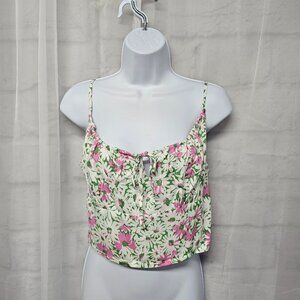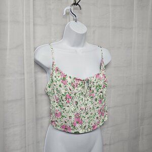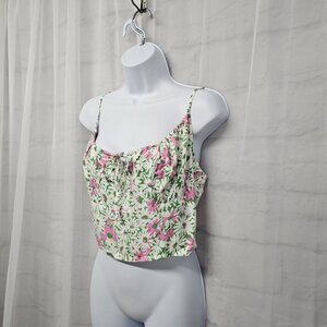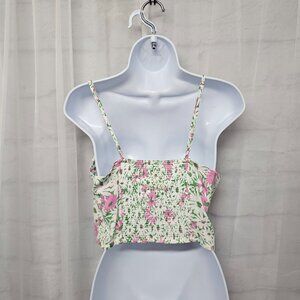 Chaser Green Pink Floral Tank Cropped Festival Y2K Smocked M