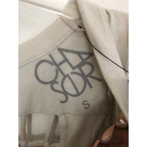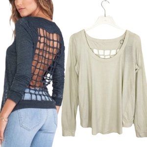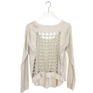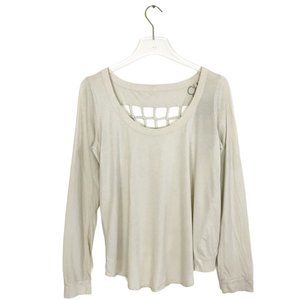 Chaser Grid Open Back Tee Long Sleeve Scoop Neck Cream Size Small NWT