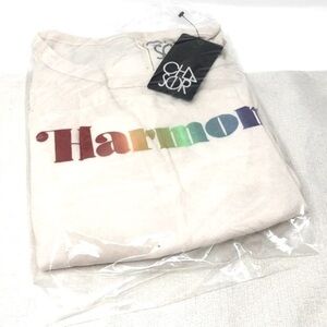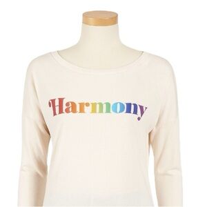 New with tags Chaser long sleeve top featuring bold rainbow “Harmony” graphic across the chest.