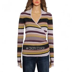 Chaser Harper Stripe Ribbed Sweater Y2K Retro V-Neck Skater Style Knit Size L
