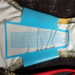 Fully lined. Floral design. Red strapoy sides. Moderate seat coverage. Bottom only. Protective liner.