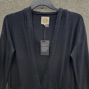 Chaser Hooded Black Open Cardigan Front Pockets Women's Medium NWT