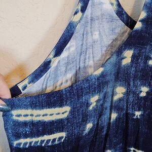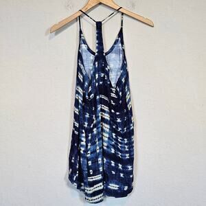 Chaser Indigo Tie Dye Voile Hi Lo T Back Henley Tank Women's Medium Boho