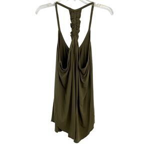 Chaser Jersey Ruffle T-Back Shirttail Cami Tank Olive Green Medium NEW NWT
