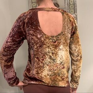 Chaser crushed velvet silk blend blouse with ombré floral print and cutout details throughout. Size S. No signs of wear. Measurements in photos.