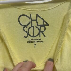 Bright yellow top with a pink gradient skirt. Sleeveless design. Perfect for casual outings.