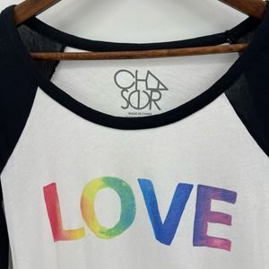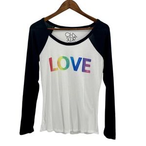 Chaser LOVE Raglan Tee Womens Medium Rainbow Black White Long Sleeve