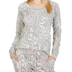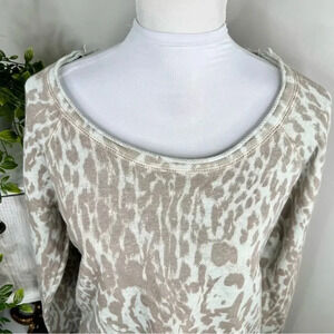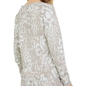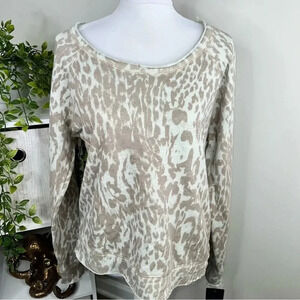 Features: Contemporary style raw edge pullover. Long sleeve with round neck. Overall animal print and straight hemline.