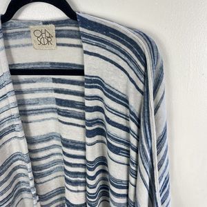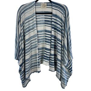 Chaser Linen Kimono One Size Blue White Flowy Boho