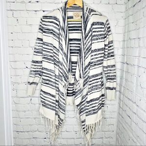 Chaser Linen Long Sleeve Fringe Trim Drape Front Duster Cardigan Size XS