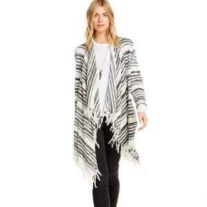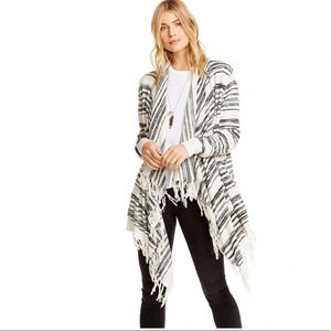 Chaser Sweater Linen L/S Fringe Trim Drape Front Cardigan in a size XS.