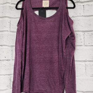 Chaser Long Sleeve Open Back Cold Shoulder Tee Purple Size Medium
