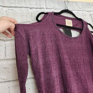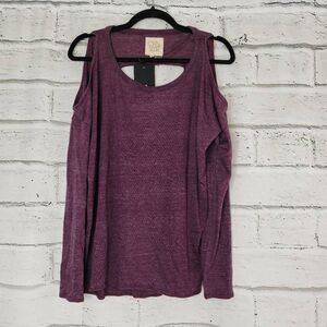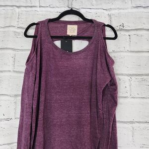 Chaser Long Sleeve Open Back Cold Shoulder Tee Purple Size Medium Casual