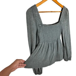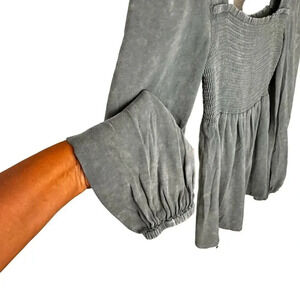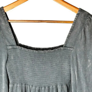 Chaser Long Sleeve Smocked Top Steele Blue Women's Small NWT BOHO Relaxed Flowy