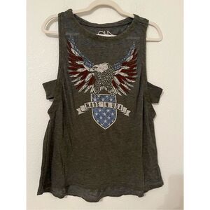 Show your love for the USA with this chaser cut out tank. “Made in USA” with Eagle. Cut outs at side as shown in photos.