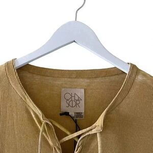 Chaser Marigold LACE UP HI LO RIB TEE Bohemian Women’s Short Sleeves Top SZ M