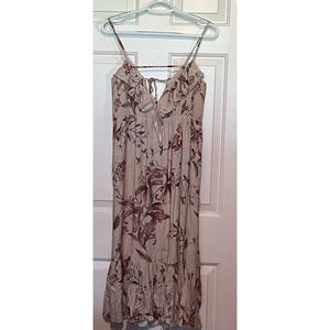 Chaser Maternity Ruffled Beige Floral Maxi Dress Size M 44" Long x 15" PTP